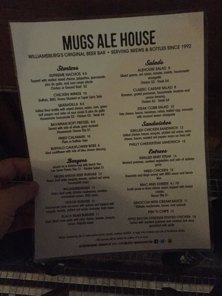 Mugs Ale House is a classic sports bar located at 125 Bedford Ave in Brooklyn, NY. They offer a variety of amenities such as takeout, delivery, outdoor seating, and free Wi-Fi. The menu features appetizers like Buffalo Wings and Fried Calamari, hearty soups like Chili and Shepherd's Pie, and fresh salads like Mugs Salad and Portobello Salad. Customer reviews praise the casual atmosphere, great selection of beers on draft, and attentive staff. The bar is known for its happy hour specials and diverse crowd. With its cozy pub feel and tasty bar food, Mugs Ale House is the perfect spot for a relaxed night out with friends.